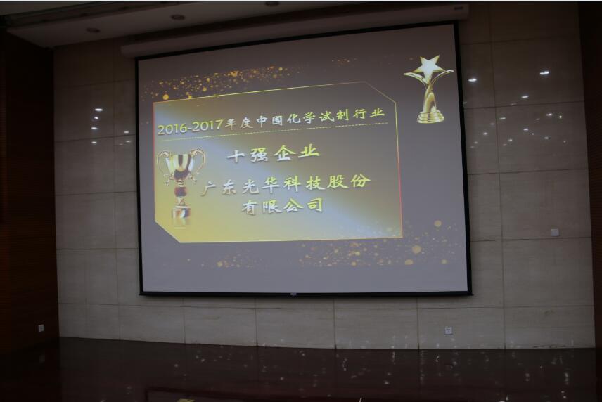 作為本次會議的重頭戲之一,大會公布了由全國化學試劑信息總站評選的2016-2017年度中國化學試劑行業十強企業名單,這些企業代表著國內化學試劑行業的中堅力量。光華科技憑借近40年來在化學試劑領域的深厚耕耘及不斷進取,再次躋身十強企業名單!